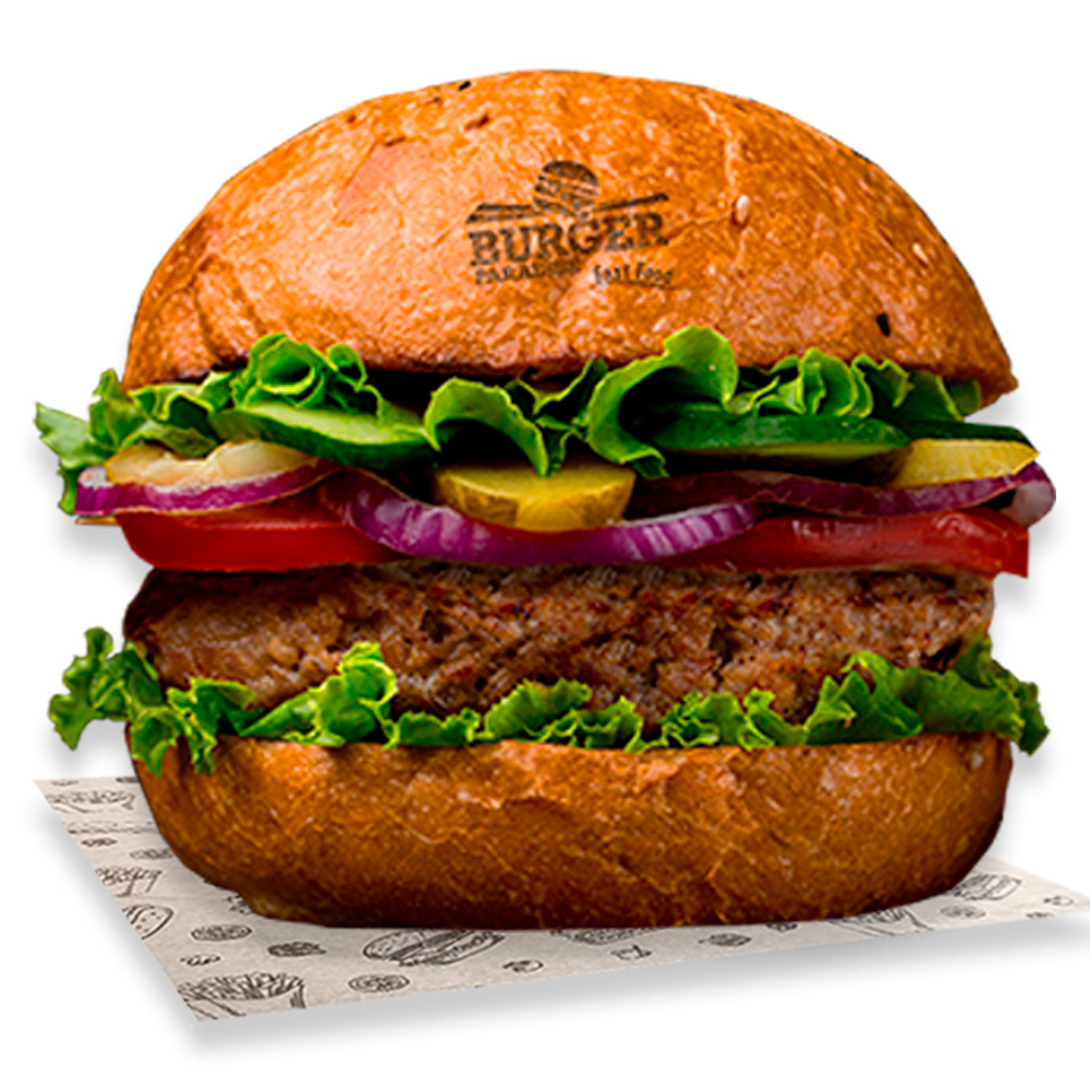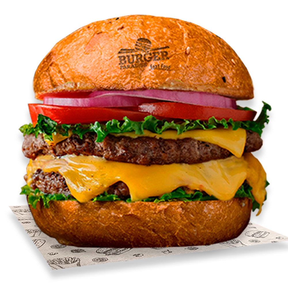Hamburguesa con doble carnes a la parrilla, tocino y vegetales