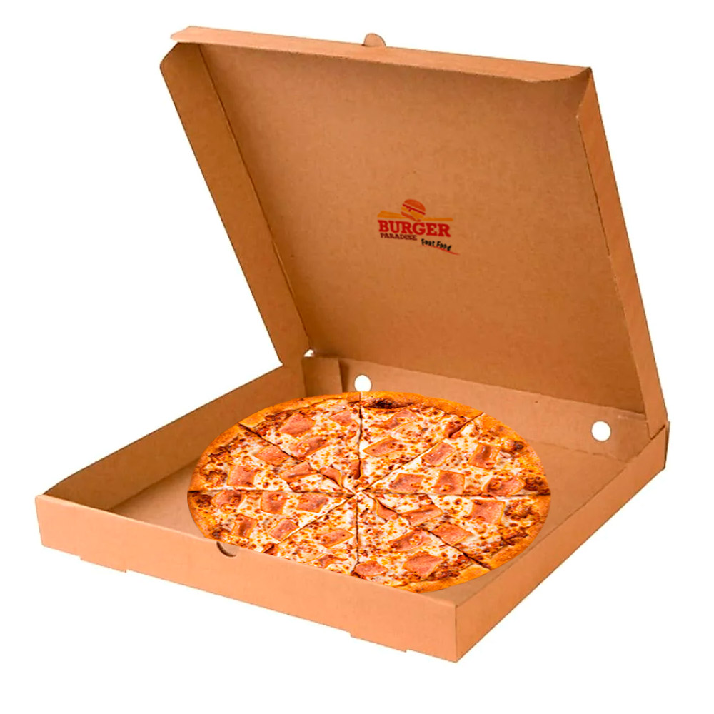 Slide de pizza de masa fina bañado son pasta de tomate, queso y jamón
