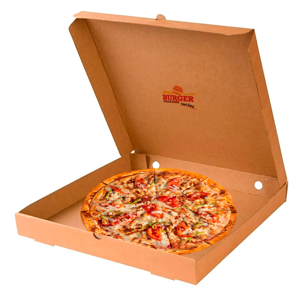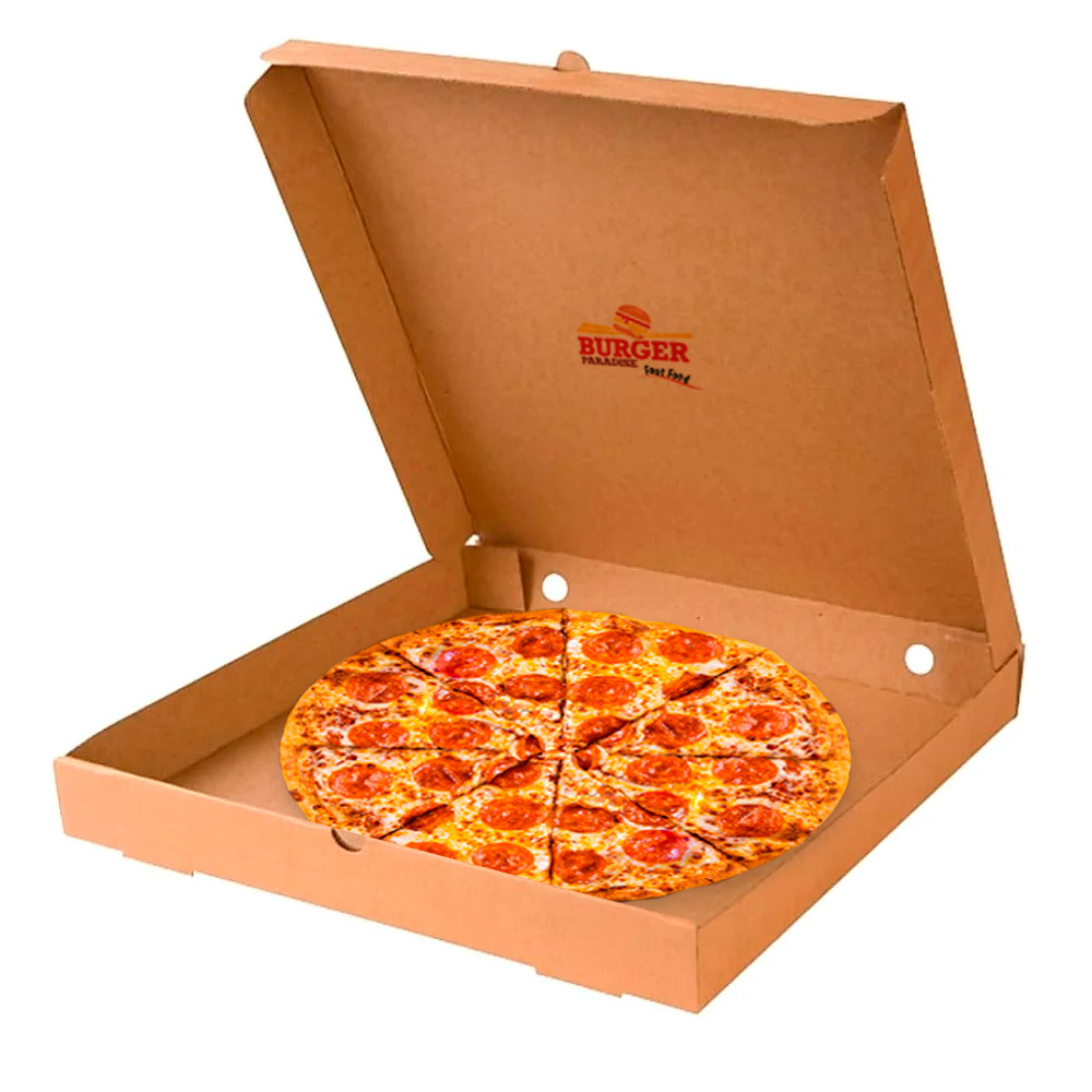 Slide de pizza de masa fina bañado son pasta de tomate, queso y pepperoni